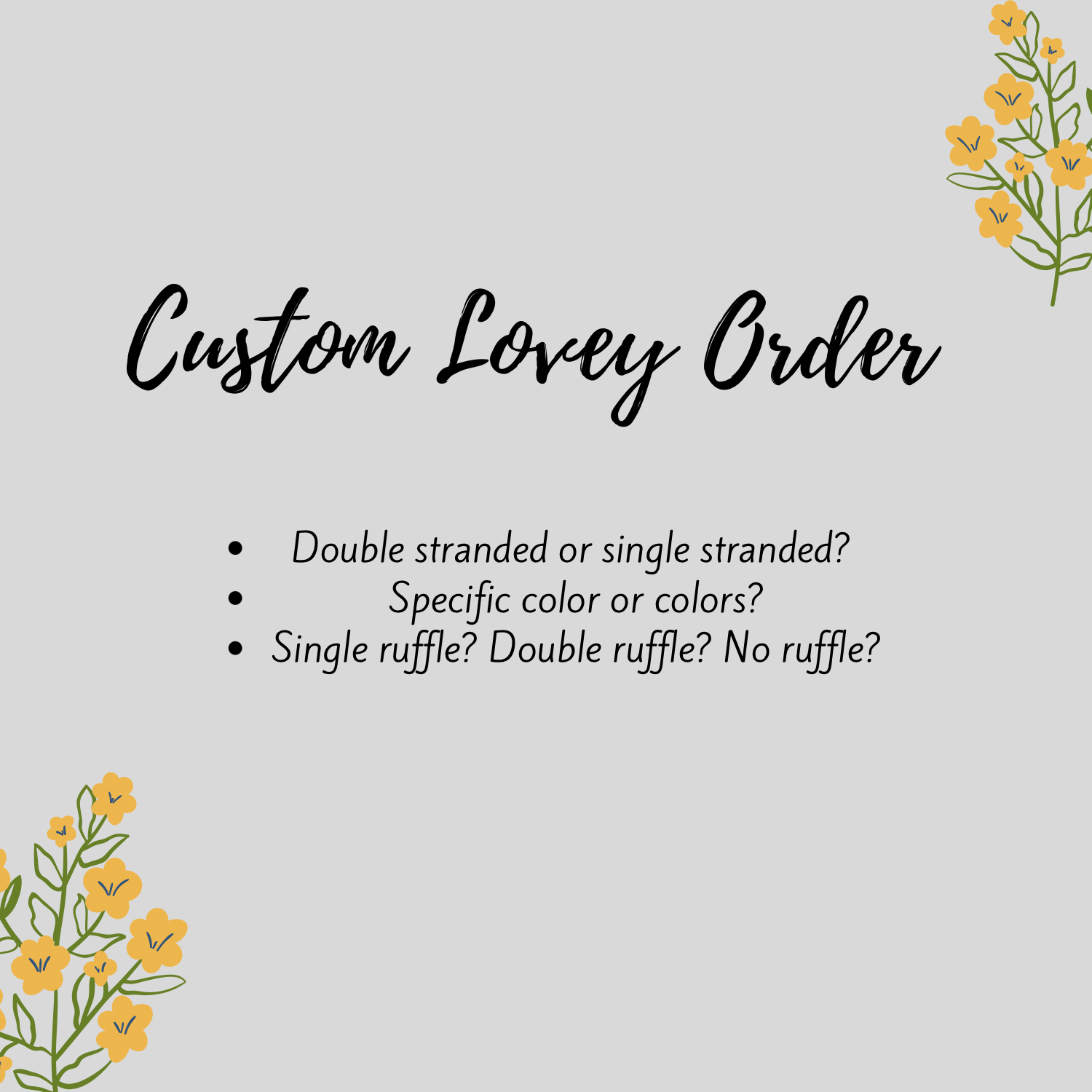 Let me know color scheme, if you want this double stranded or single stranded, and what sort of border you would like - double ruffle, single ruffle, or no ruffle.