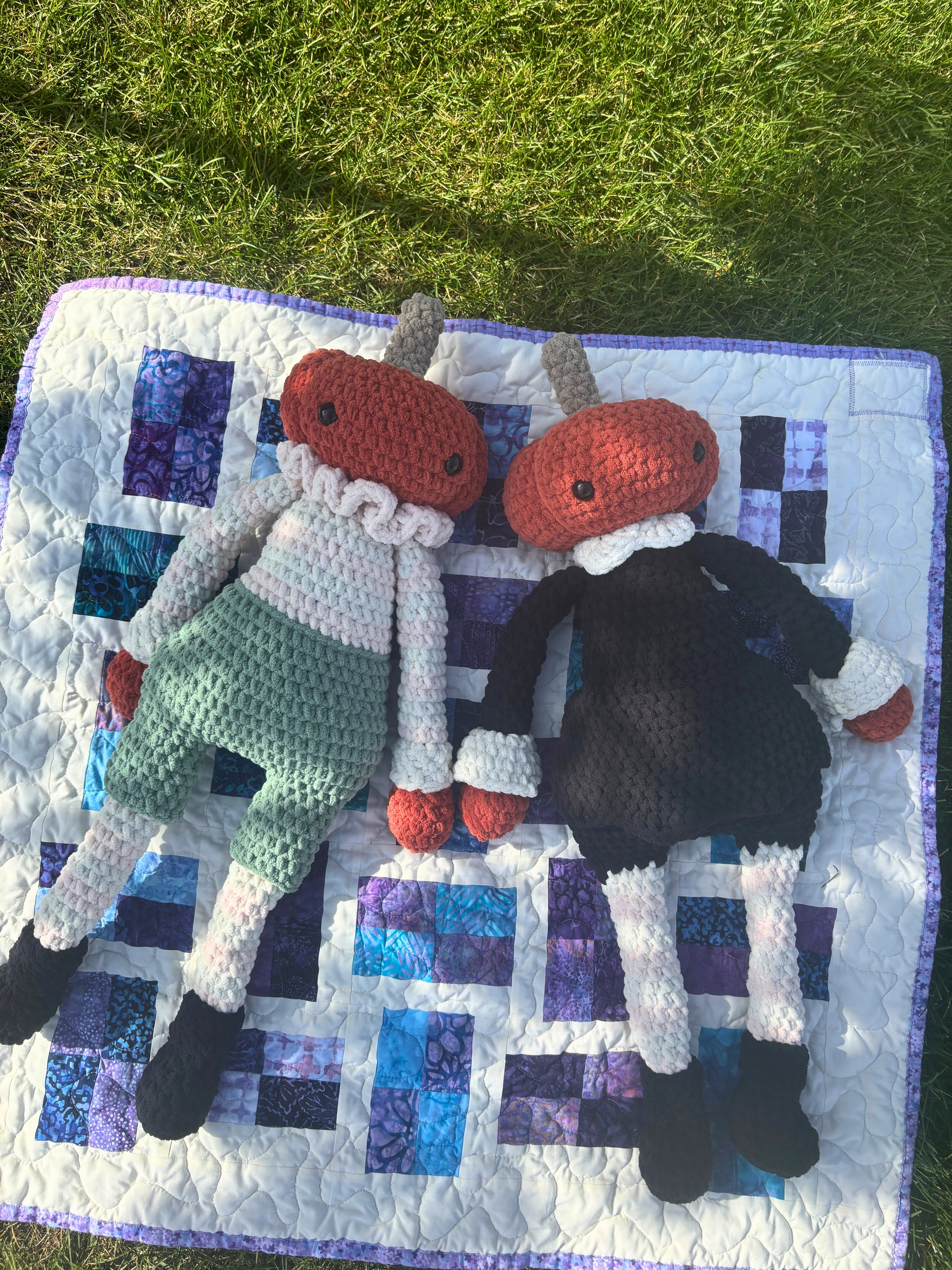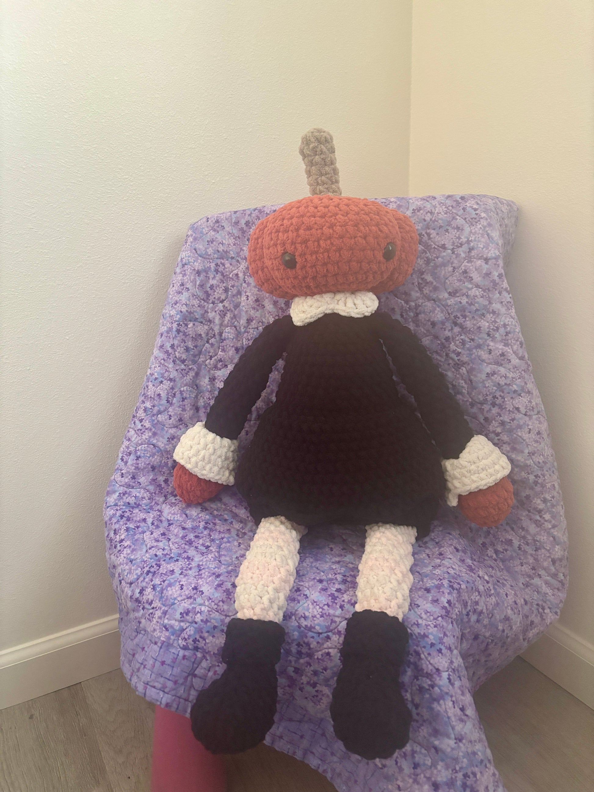 Ms. Jackie is ready to be added to your Halloween/Fall decor. Her black dress and white collar/cuffs was inspired by Wednesday Adams. Jackie is just about 2 feet tall.